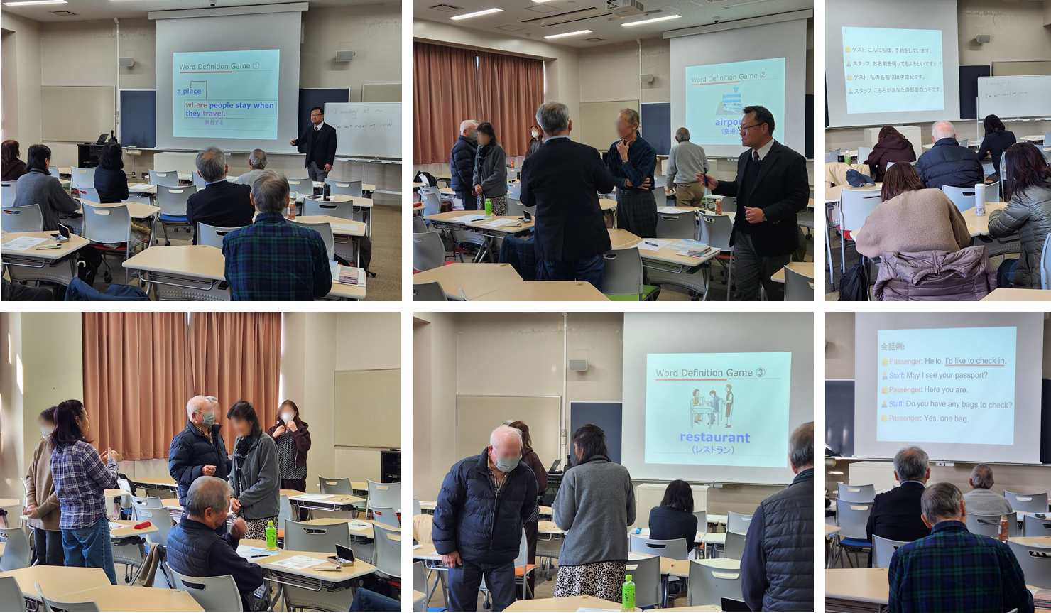 日本を訪れる外国人観光者に向けて、様々な場面での英語コミュニケーションスキルをワークショップ形式で講座が展開されました。歓迎のおもてなし表現から駅での簡単な会話、野球英語やSNSでの対話、日米ことわざ比較、そして日本文化の紹介まで幅広いトピックをカバーした講座となりました。英語を通じて異文化を理解し、自信を持って海外から来た人とコミュニケーションを取れるように工夫を凝らした内容で、参加者も楽しく学び、アンケートにも満足の感想が寄せられ、複数回実施をして欲しい等のコメントもいただきました。
