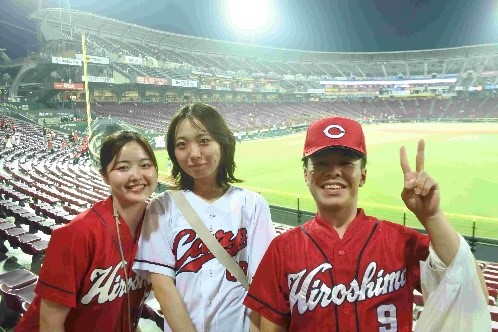 一方、プロスポーツの経営、地域経済への波及に関心をもつグループは、プロスポーツのマーケティングの好事例である「カープ女子」を体験するため、マツダスタジアムを訪れました。ゼミ教員が学生の頃とは全くイメージが変わり、カープの女性ファン層が定着。また元々市民球団として発足した経緯があり、全国人気とは言い難かったのですが、ファン層が着実に他県へと拡大。スタジアムでの観戦を目的とした旅行需要が発生しているなどの、地域経済への貢献を肌で体験できました。