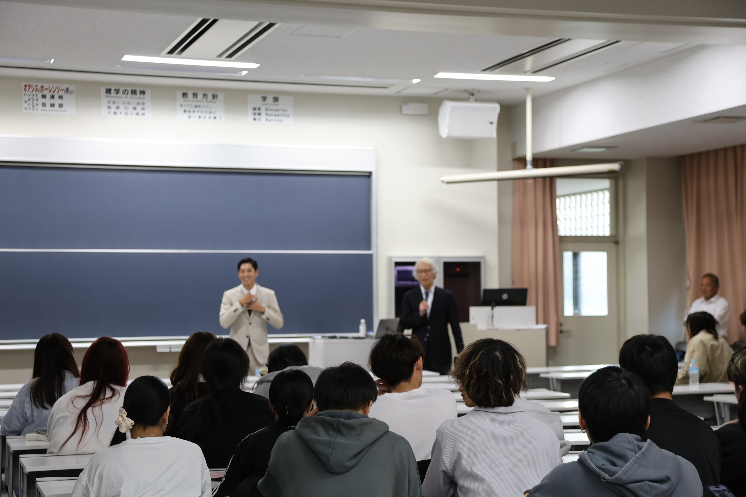 10月2日の授業では、WMOインターナショナルフェザー級チャンピオン・瀧澤博人さんをお迎えして特別講義をいただきました。