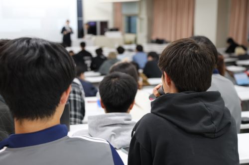 ご自身の「少しやんちゃだった」学生時代の思い出、社会人としての多彩な経験を、後輩である学生たちに熱く語ってくださり、学生時代に本学で教わった「報告・連絡・相談(ほうれんそう)」と「ホスピタリティ」は、社会で最も重要なことだと実感していると、話されました。