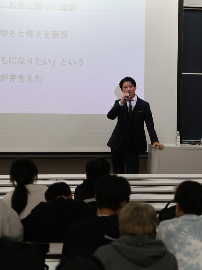 令和7年10月16日の学長担当科目「先人に学ぶ」では、サービス経営学部の2010年の卒業生で、THE WHY HOW DO COMPANY株式会社(愛称 ワイハウ)の社長CEOである亀田信吾さんのご講演をいただきました。